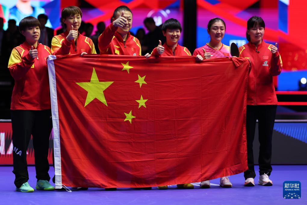 当日,在韩国釜山进行的2024年国际乒联釜山世界乒乓球团体锦标赛女子团体决赛中,中国队3比2战胜日本队,夺得冠军。