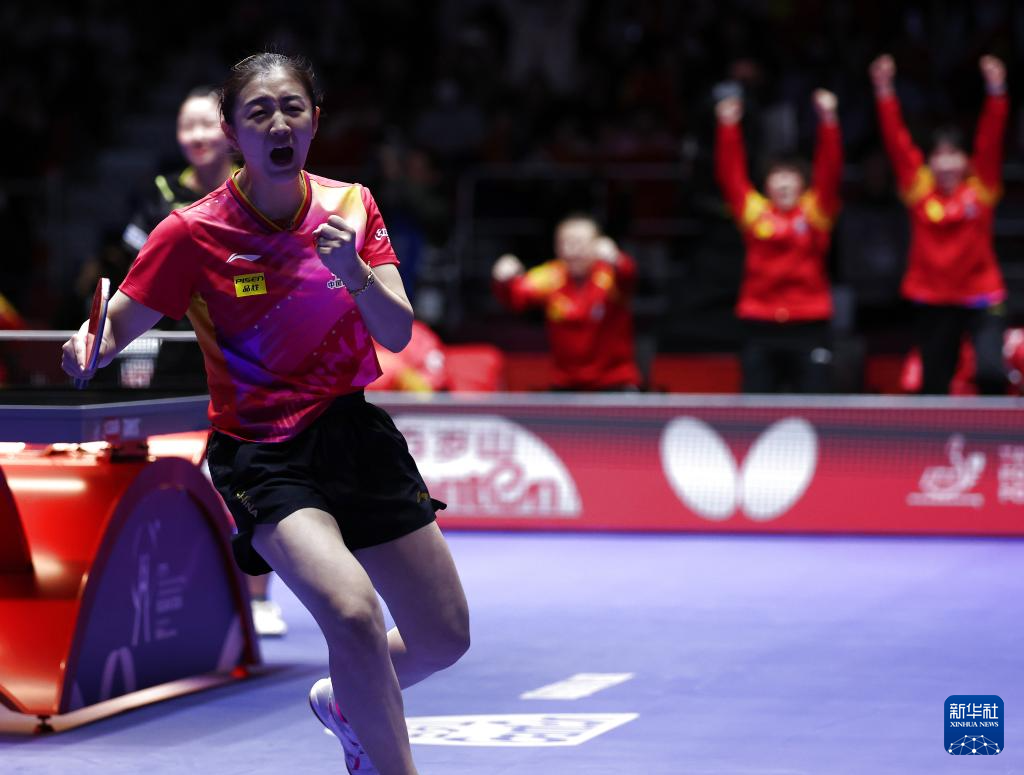 当日,在韩国釜山进行的2024年国际乒联釜山世界乒乓球团体锦标赛女子团体决赛中,中国队3比2战胜日本队,获得冠军。
