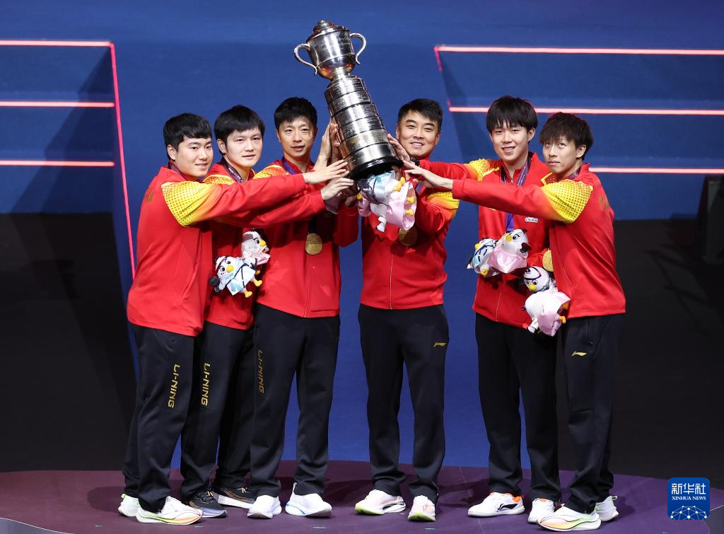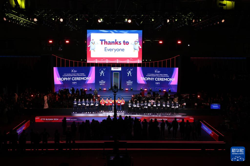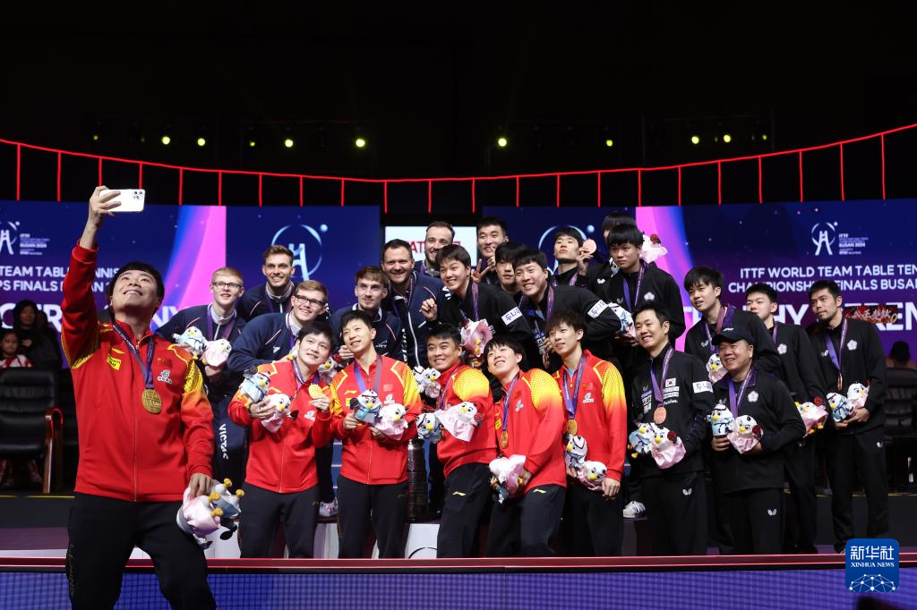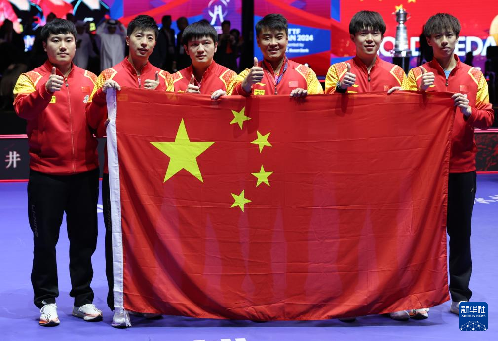 当日,在韩国釜山进行的2024年国际乒联釜山世界乒乓球团体锦标赛男子团体决赛中,中国队3比0战胜法国队,夺得冠军。