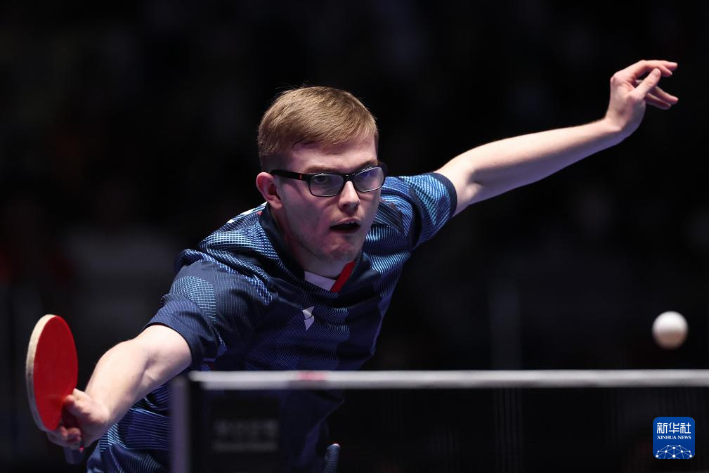 2月25日,法国队选手费利克斯·勒布伦在第一盘比赛中发球,他0比3不敌中国队选手王楚钦。新华社记者 杨世尧 摄