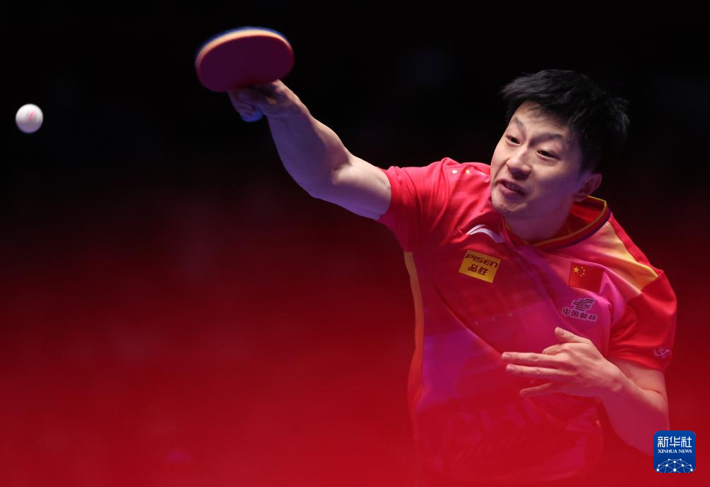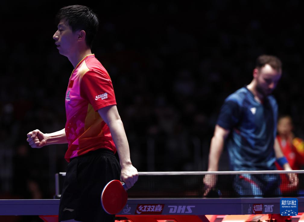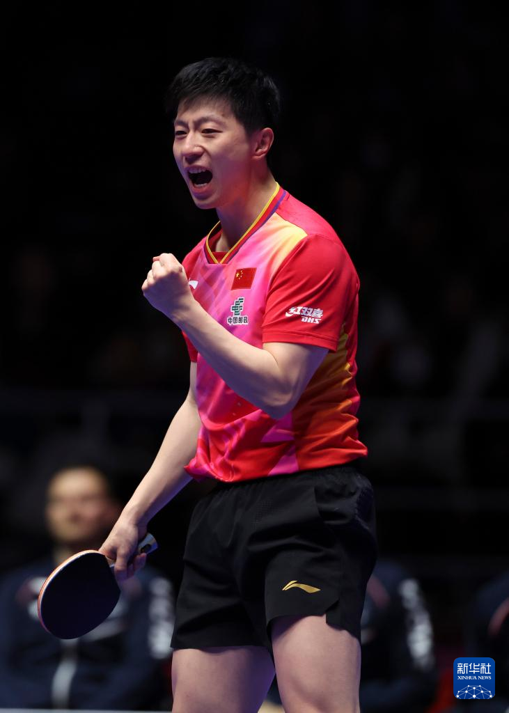 2月25日,中国队选手马龙在第三盘比赛中,他3比1战胜法国队选手西蒙·高兹。新华社记者 陶希夷 摄