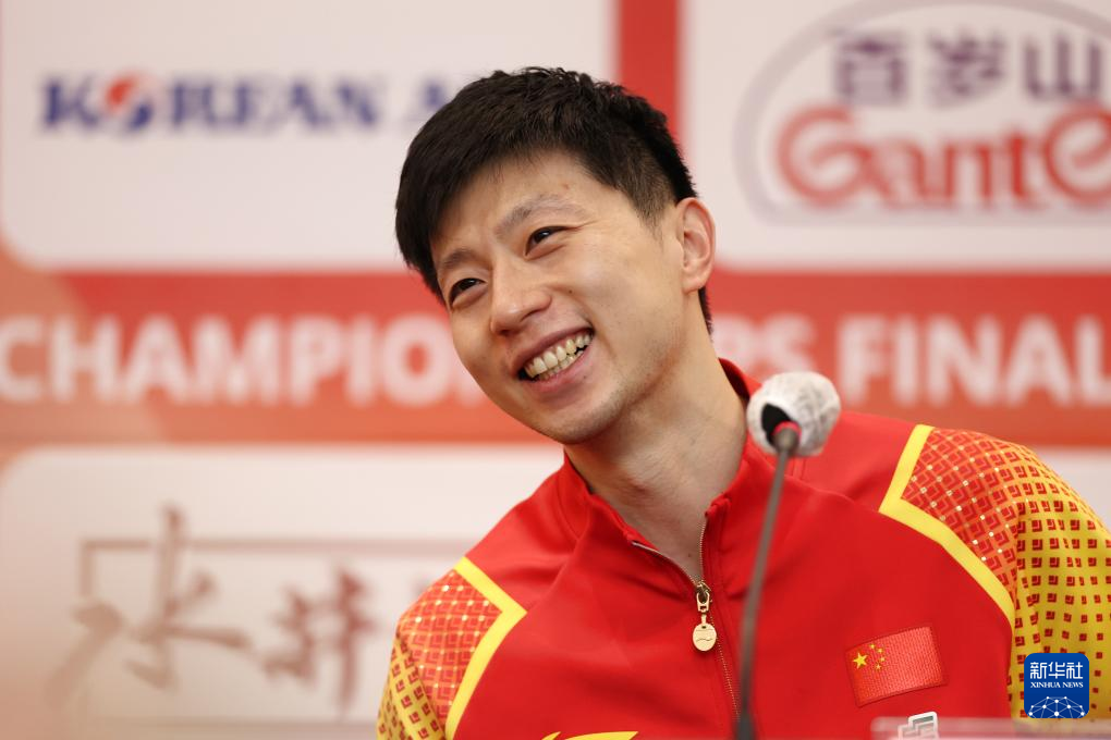 2月25日,中国队选手马龙赛后出席发布会。新华社记者 张涛 摄