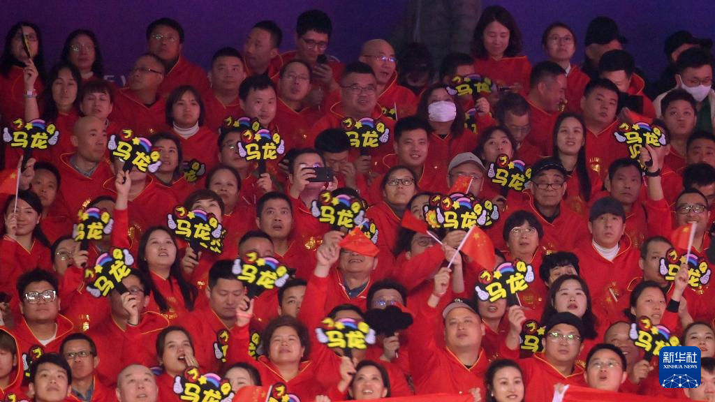 2月25日,中国队球迷为马龙加油。新华社记者 陶希夷 摄