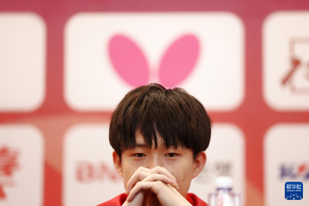 2月25日,中国队选手王楚钦出席赛后发布会。新华社记者 张涛 摄