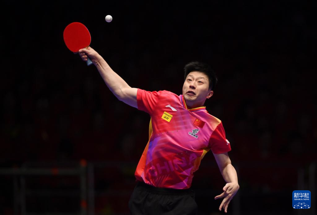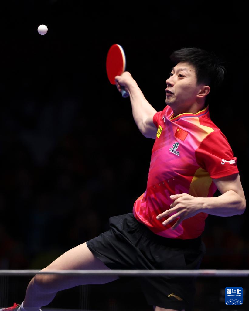 2月25日,中国队选手马龙在第三盘比赛中回球,他3比1战胜法国队选手西蒙·高兹。新华社记者 姚琪琳 摄