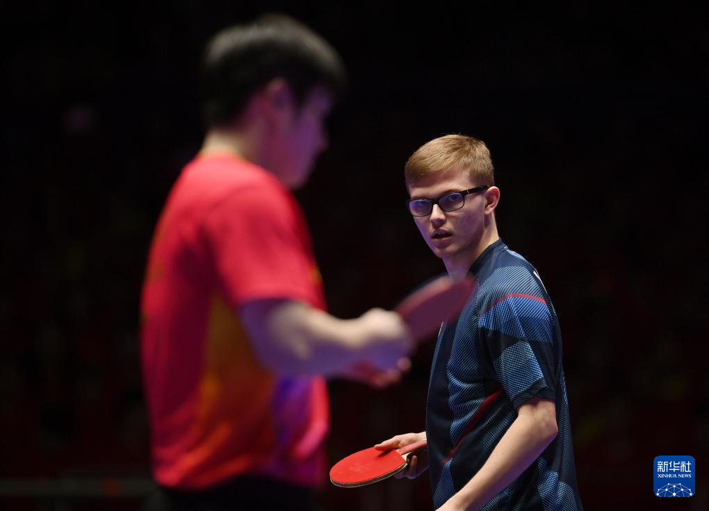 2月25日,中国队选手樊振东在第二盘比赛中,他3比2战胜法国队选手艾利克斯·勒布伦。新华社记者 姚琪琳 摄