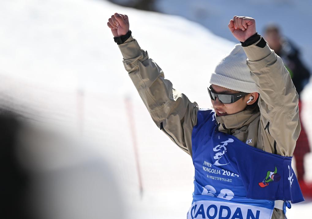 2月24日,山西队选手苏翊鸣在比赛中庆祝。新华社记者 贝赫 摄