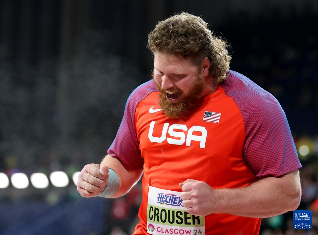 当日,在英国格拉斯哥举行的2024年室内田径世锦赛男子铅球决赛中,美国选手克劳瑟以22米77的成绩夺得冠军,并打破赛会纪录。