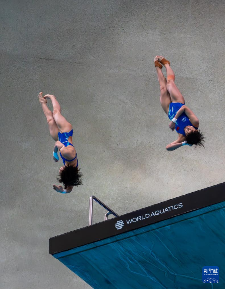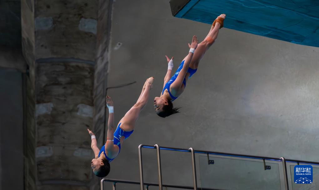 3月2日,陈芋汐(左)/全红婵在比赛中。新华社发(刘佳欢摄)