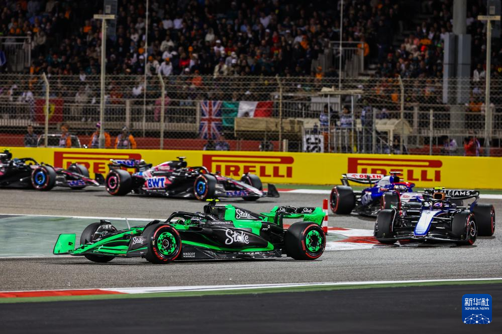 3月2日,索伯车队中国车手周冠宇(前)在比赛中。最终,他获得第11名。新华社发(钱俊摄)