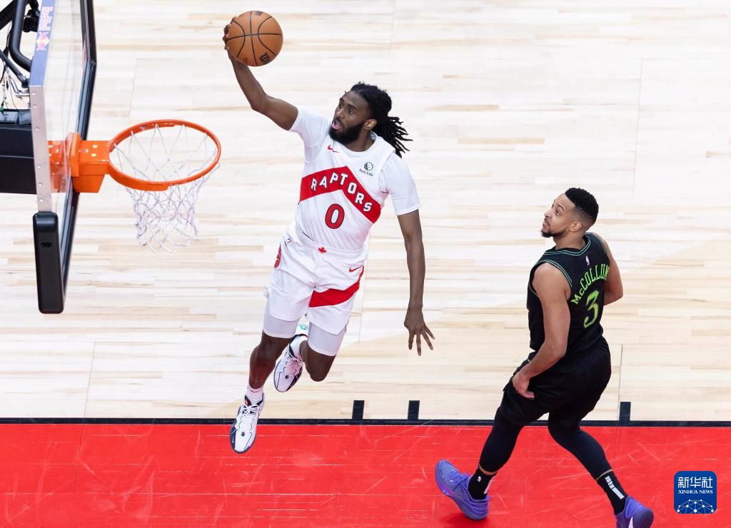 3月5日,猛龙队球员弗里曼-利伯蒂(左)在比赛中上篮。新华社发(邹峥摄)