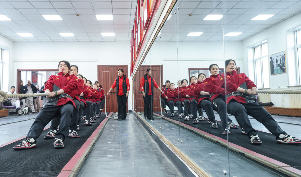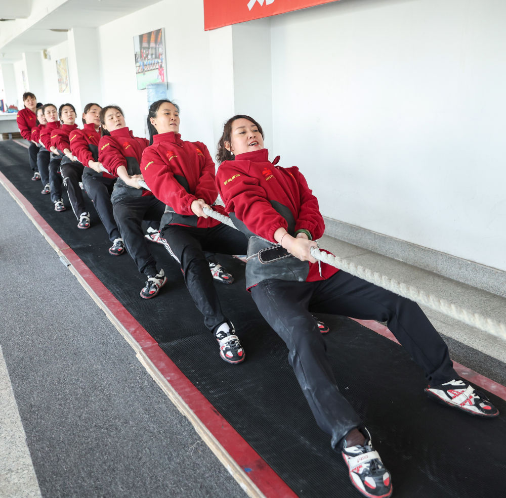 2月29日,鞍钢集团女子拔河队在训练中。新华社记者 龙雷 摄
