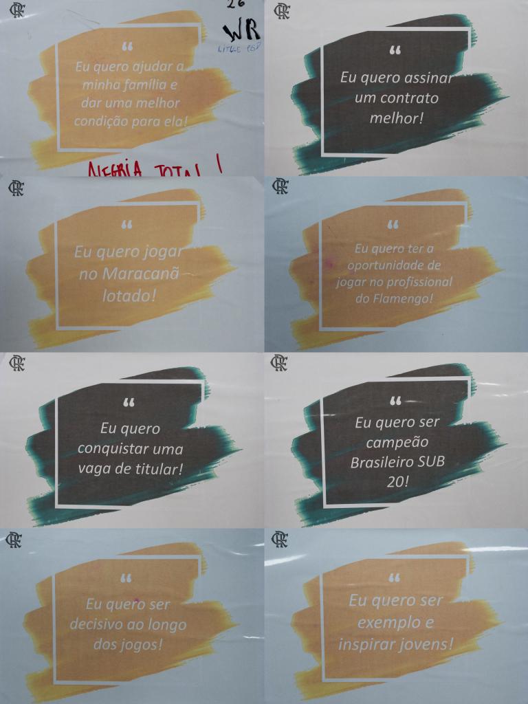 拼版照片:这是弗拉门戈俱乐部青训基地内小球员在更衣位上写下的愿望(3月6日摄)。新华社记者 王天聪 摄