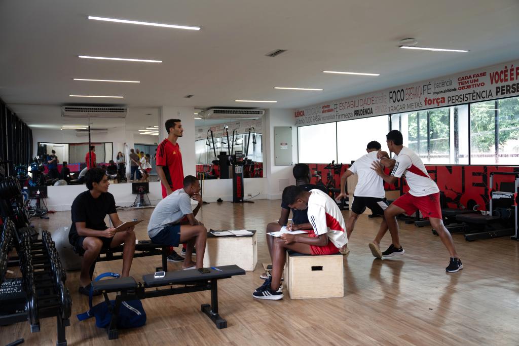 该基地行政管理负责人内·里贝罗告诉记者,6岁的孩子就可以到俱乐部位于里约城里的室内五人制足球队训练,11岁后可以到青训基地训练,从7至20岁每一个年龄都有一支球队,每支队伍30人左右。