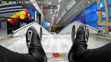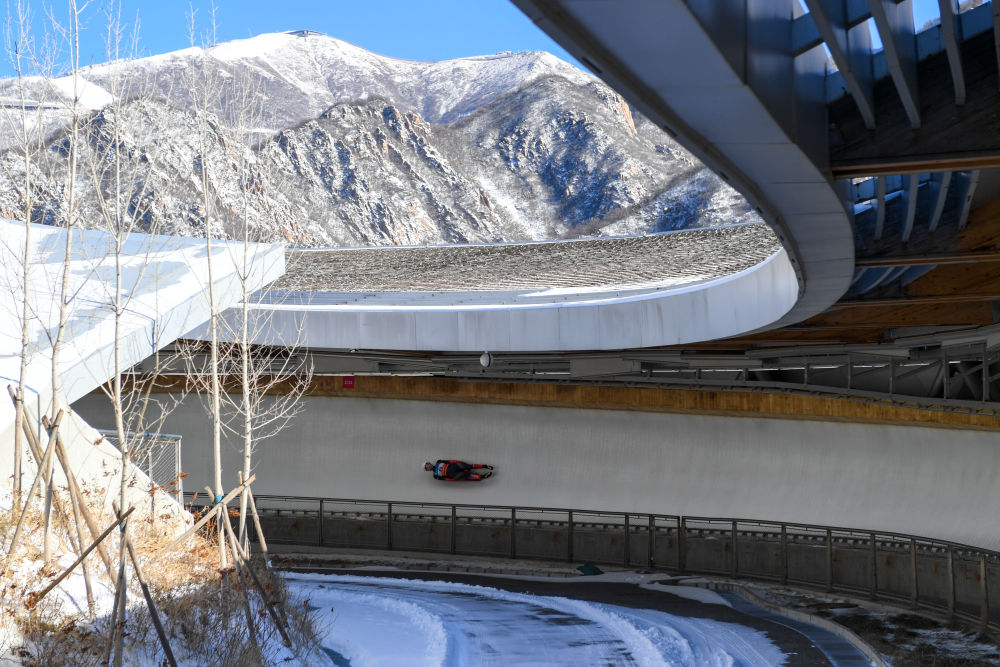2023年12月17日,陕西队选手胡慧兰在国家雪车雪橇中心举行的第十四届全国冬季运动会女子单人雪橇项目比赛中。