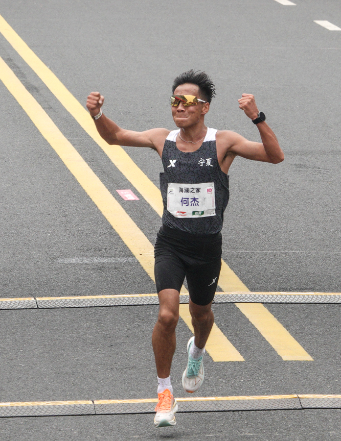 24日当日气温虽然有些稍高,但预报的中雨并没有下。2023年先后打破全国纪录的何杰和杨绍辉都展现出高质量的冬训成果,始终和高水平外籍选手跑在一起。直到最后阶段,何杰才逐渐拉开和杨绍辉的距离,最终以2小时6分57秒打破全国纪录。杨绍辉的成绩是2小时7分26秒。