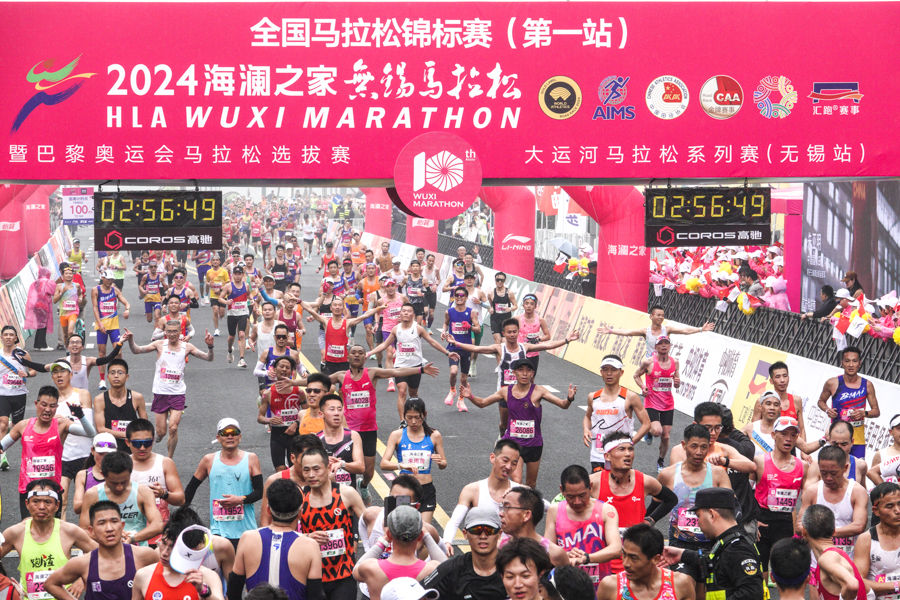 3月24日,无锡马拉松参赛选手在3小时内完赛。新华社记者 杨磊 摄