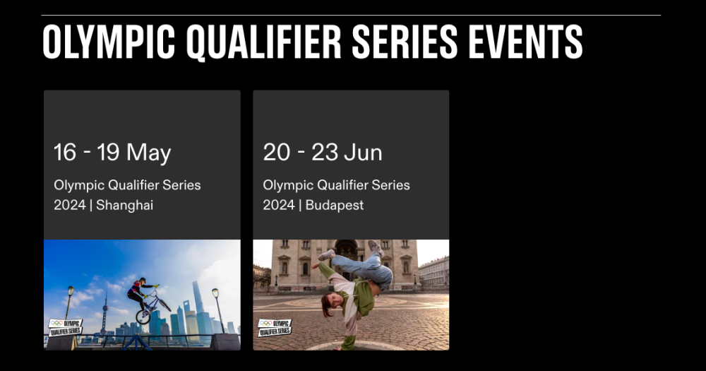 中国上海和匈牙利布达佩斯被选为这一全新赛事的举办城市,其中上海站将于2024年5月16日至19日举办,布达佩斯站将于6月20日至23日举办,包括自由式小轮车、霹雳舞、滑板和攀岩四个项目的奥运资格赛。