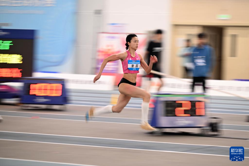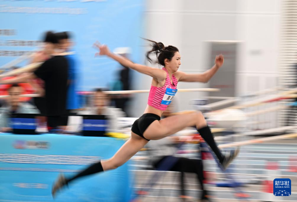 当日,2024年全国室内田径锦标赛女子三级跳远决赛在天津举行。