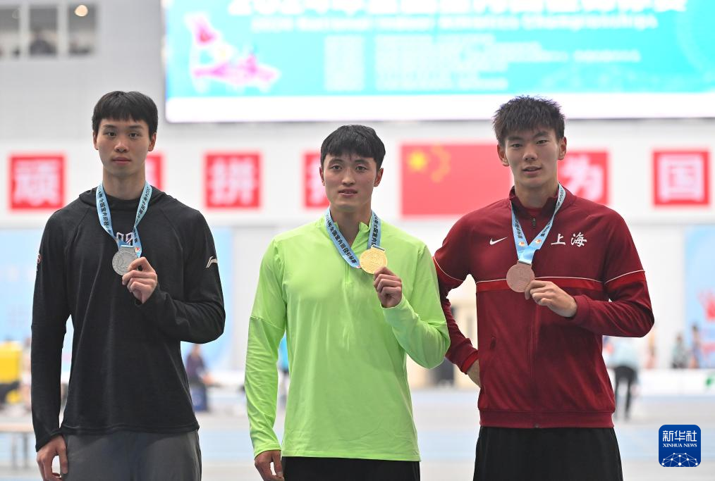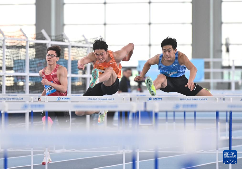 3月31日,浙江队选手华梓惠(中)在60米栏项目比赛中。他以总分5621的成绩获得冠军。新华社记者 宋彦桦 摄