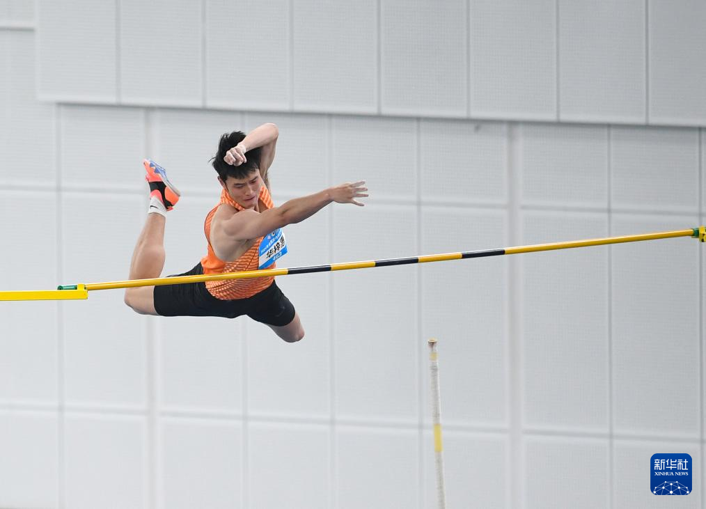 3月31日,浙江队选手华梓惠在撑杆跳高项目比赛中。他以总分5621的成绩获得冠军。新华社记者 宋彦桦 摄