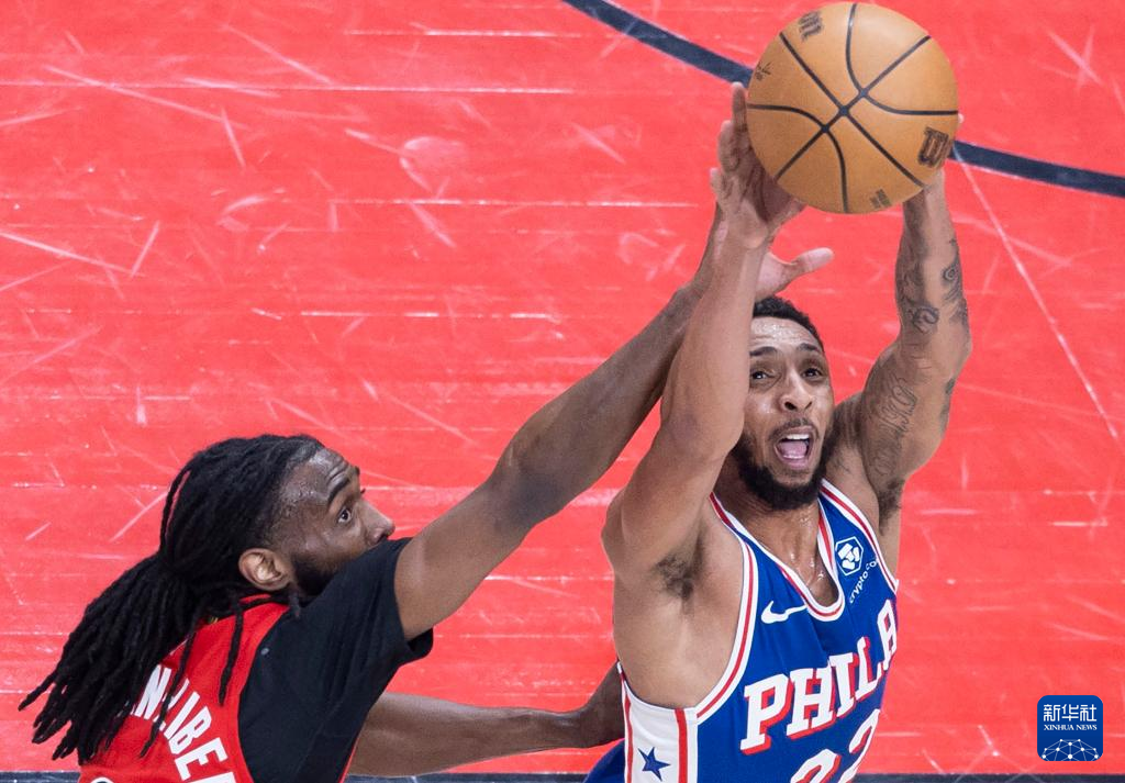 3月31日,76人队球员佩恩(右)与猛龙队球员弗里曼-利伯蒂在比赛中拼抢。新华社发(邹峥摄)