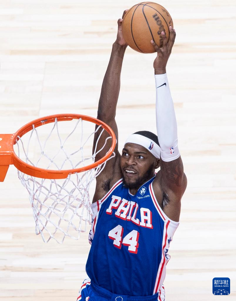 3月31日,76人队球员里德在比赛中扣篮。新华社发(邹峥摄)
