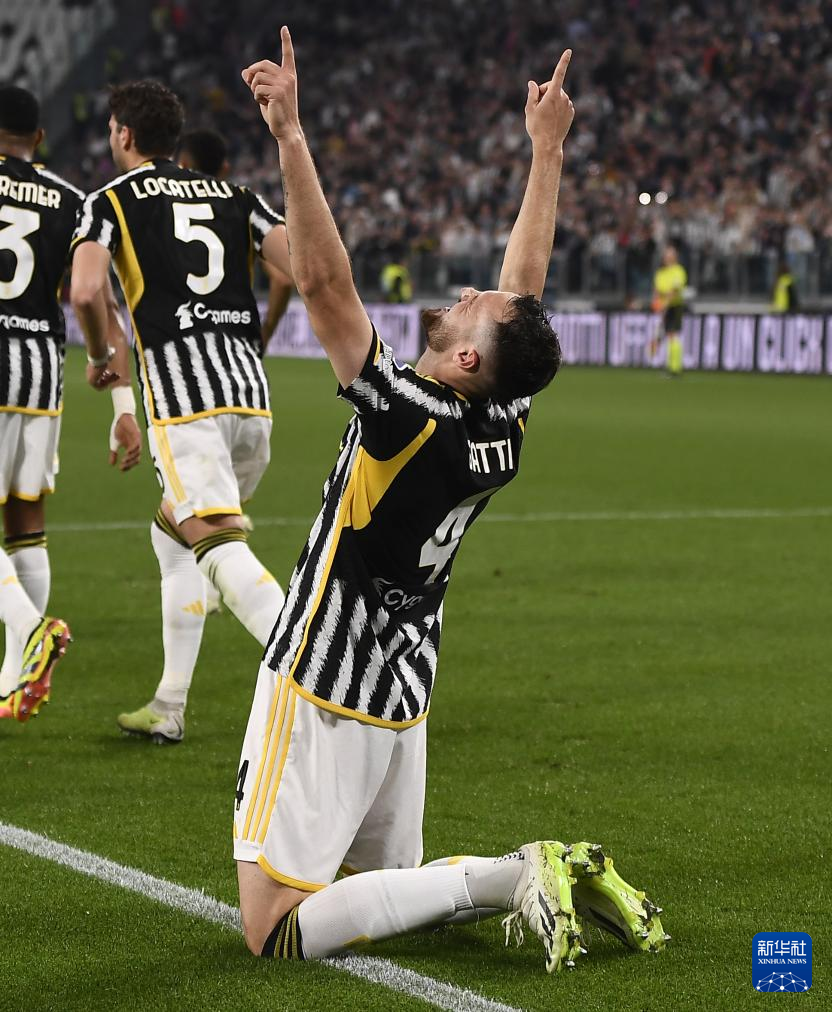 4月7日,尤文图斯队球员加蒂庆祝进球。新华社发(费代里科·塔尔迪托摄)