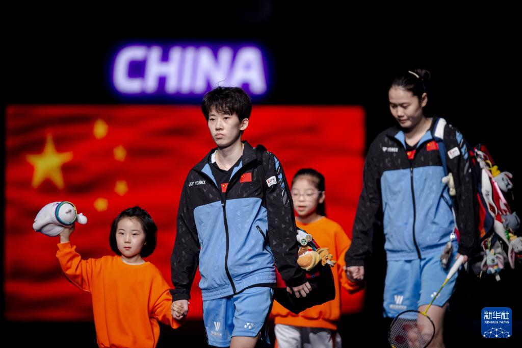4月14日,张殊贤(左)/郑雨在出场仪式上。新华社记者 江汉 摄