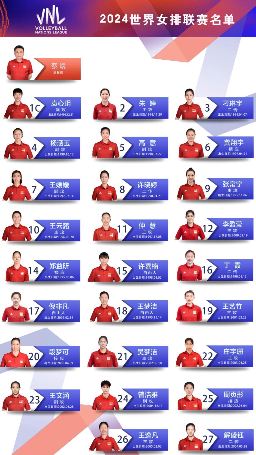 按照惯例,这将是今年中国女排征战世界女排联赛的大名单,每站比赛中国队可以根据自身需要派出不同的阵容参赛。