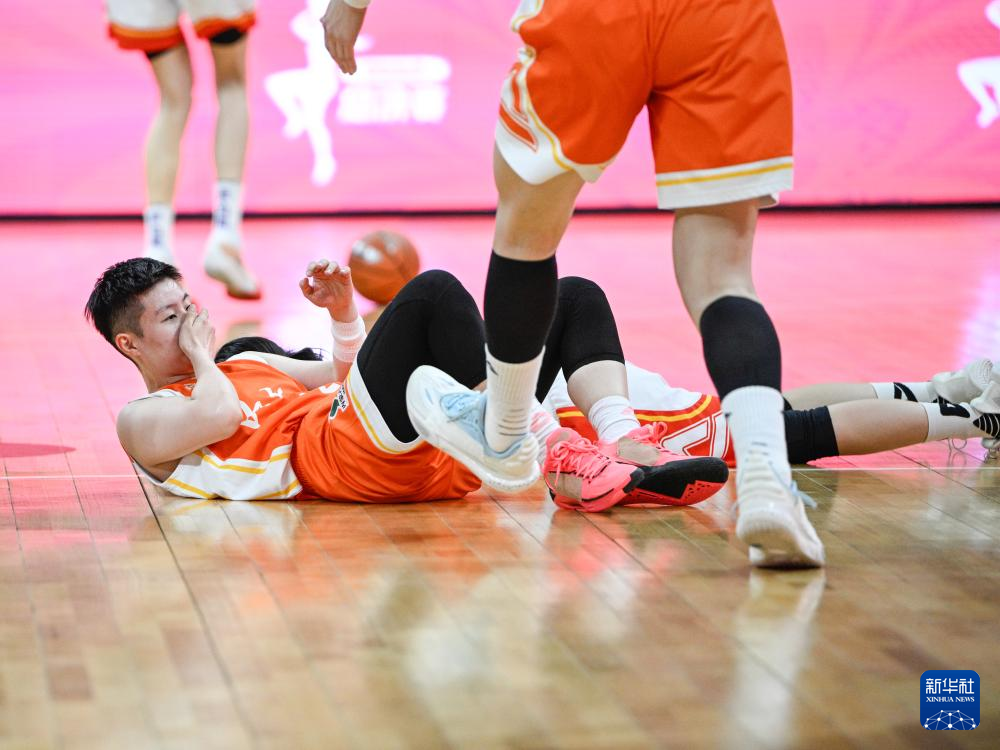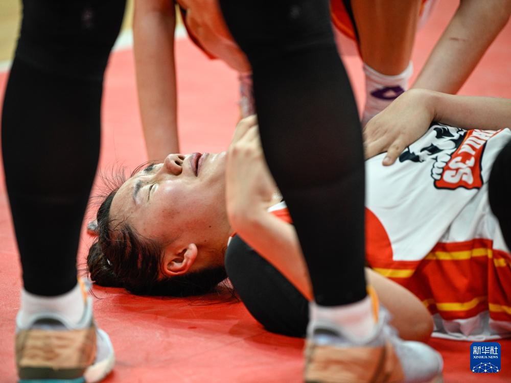 4月16日,四川远达美乐队球员贾赛琪在比赛中受伤倒地。新华社记者 王曦 摄