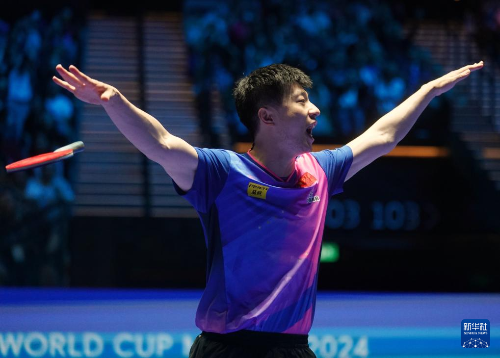 当日,在2024年澳门国际乒联男子世界杯决赛中,中国选手马龙4比3战胜另一名中国选手林高远,夺得冠军。