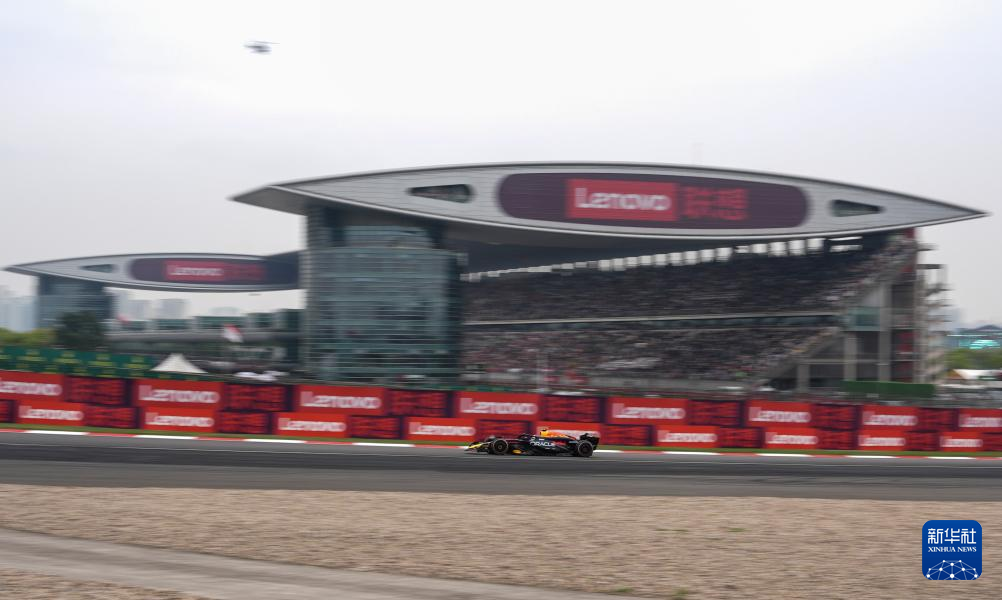 4月21日,红牛车队墨西哥车手佩雷兹驾驶赛车在比赛中。新华社记者 贺长山 摄