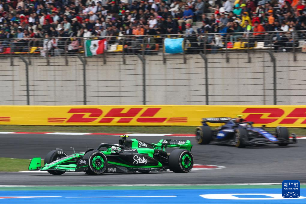4月21日,索伯车队中国车手周冠宇(左)驾驶赛车在比赛中。新华社记者 夏一方 摄