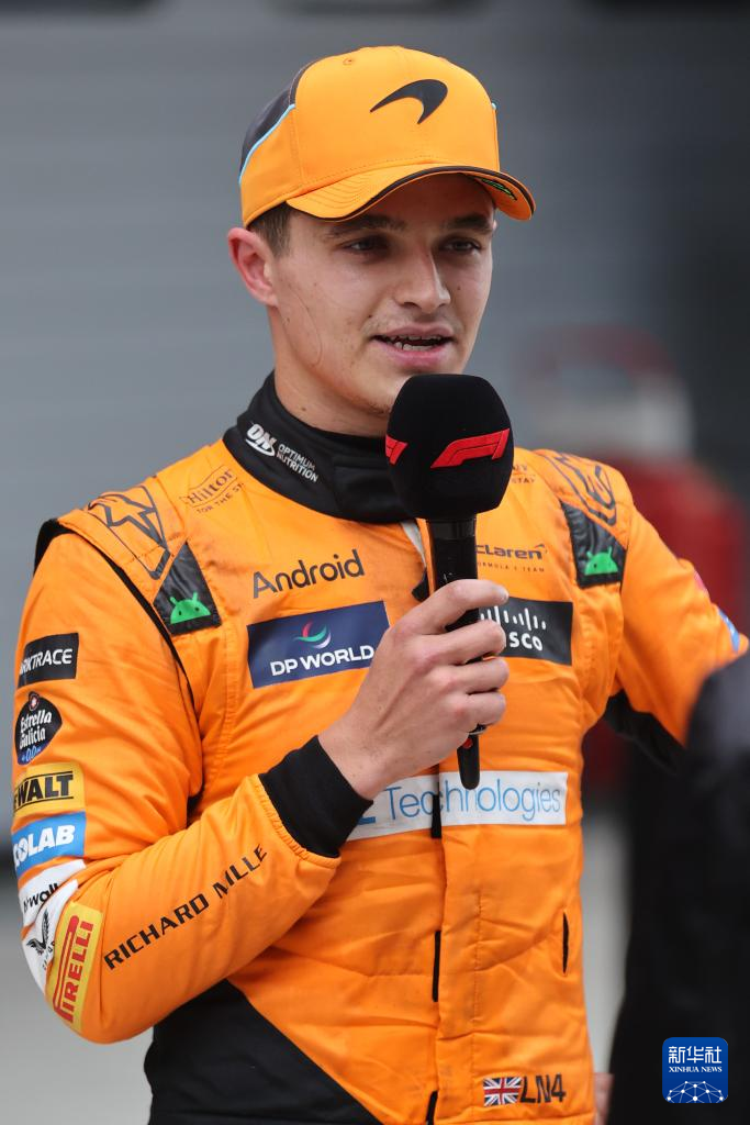 4月21日,迈凯伦车队英国车手诺里斯在赛后接受采访。新华社记者 王翔 摄