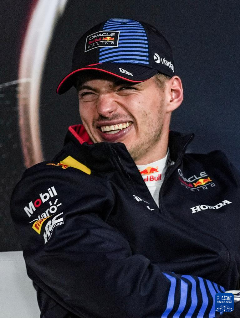 4月21日,红牛车队荷兰车手维斯塔潘在赛后访谈中。新华社记者 夏一方 摄