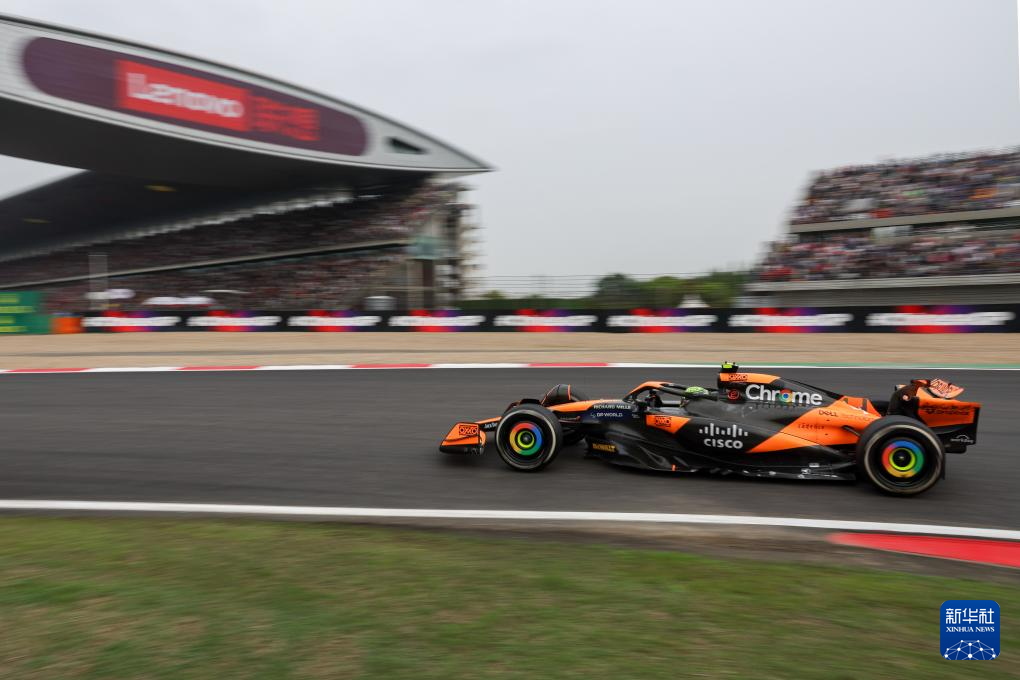 4月21日,迈凯伦车队英国车手诺里斯驾驶赛车在比赛中。新华社记者 王翔 摄