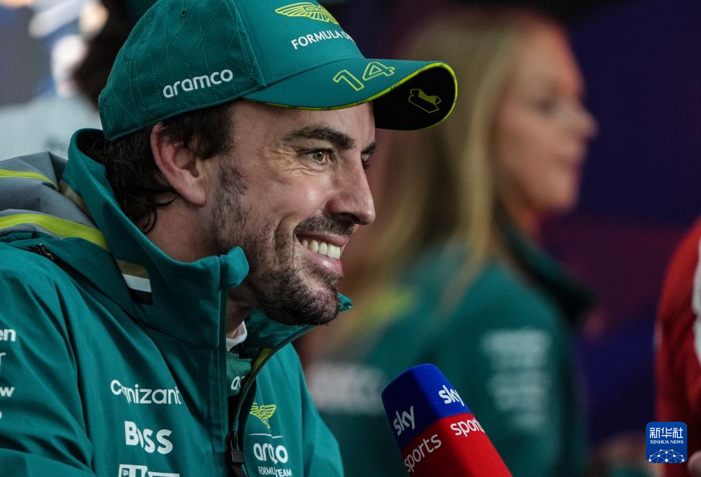4月21日,阿斯顿·马丁车队西班牙车手阿隆索在比赛后接受采访。他最终获得第七名。新华社记者 夏一方 摄