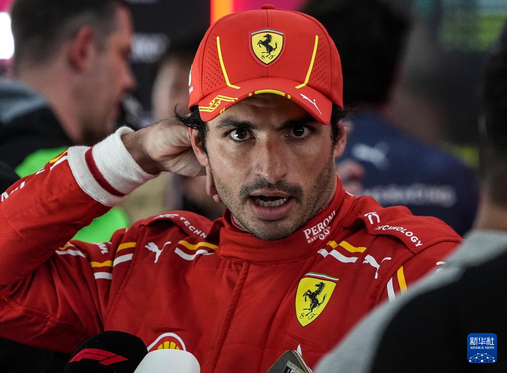 4月21日,法拉利车队西班牙车手赛恩斯在比赛后接受采访。最终他获得第五名。新华社记者 夏一方 摄