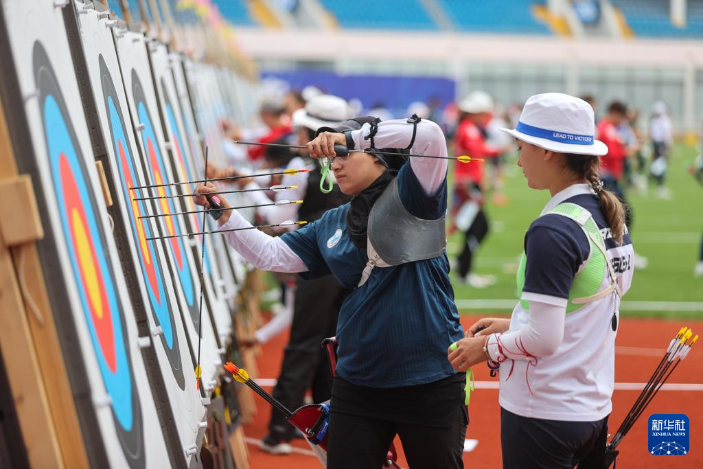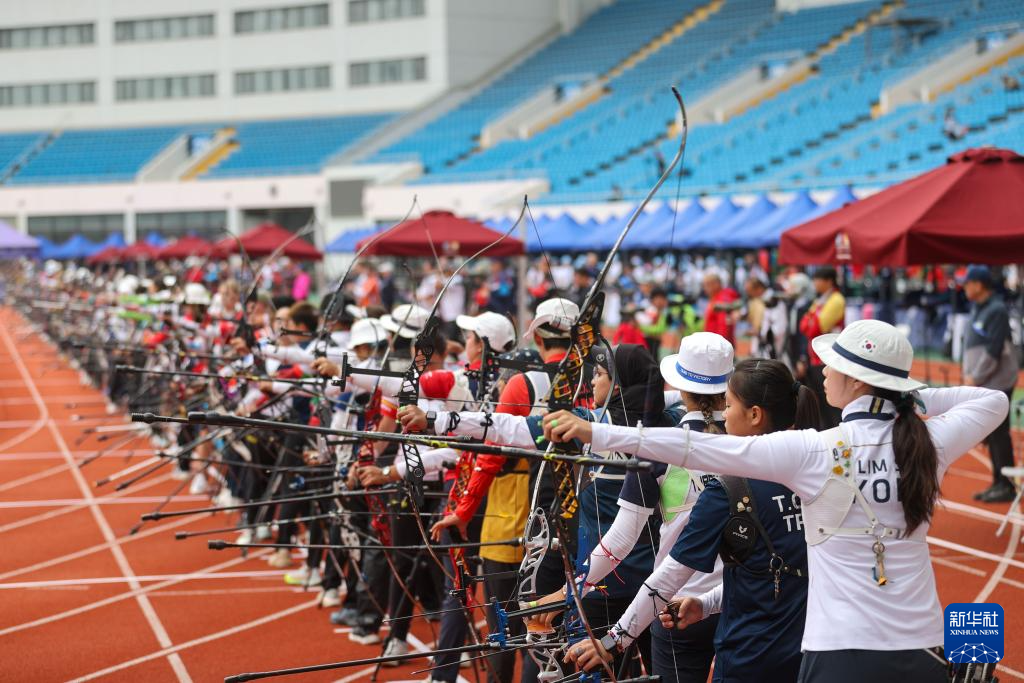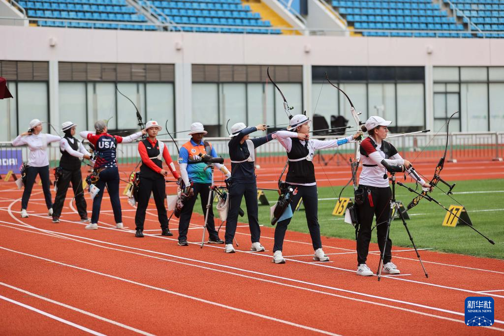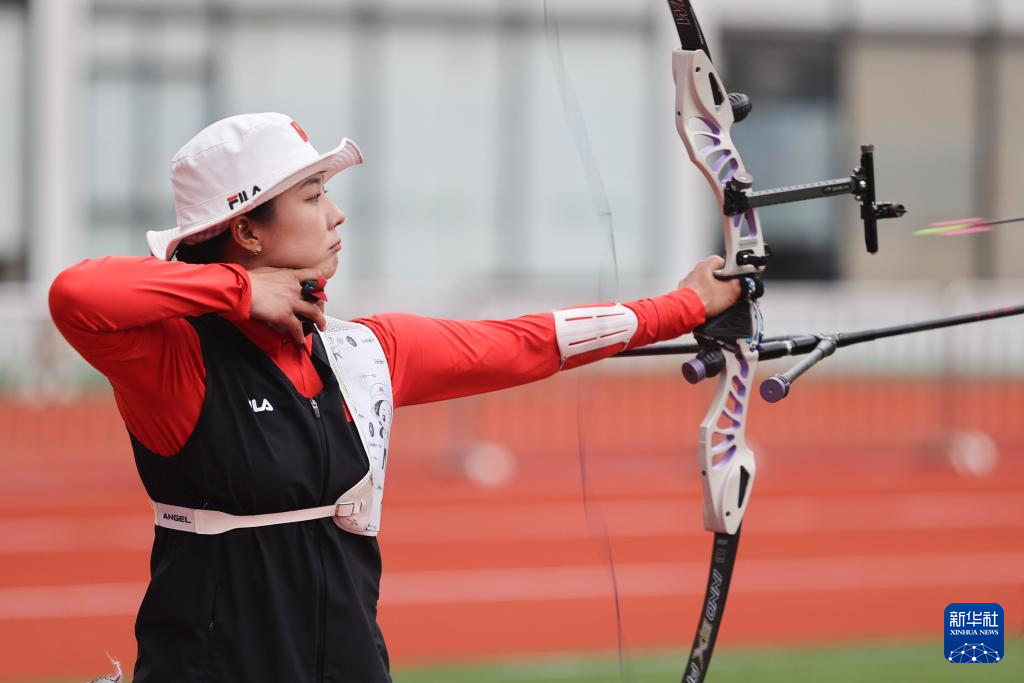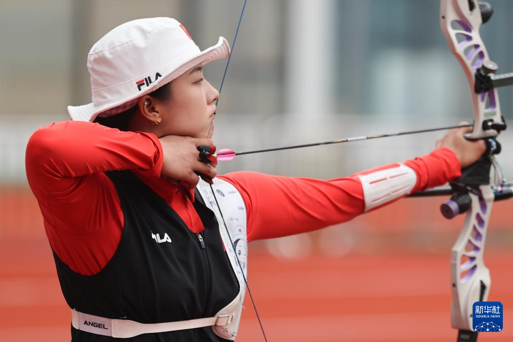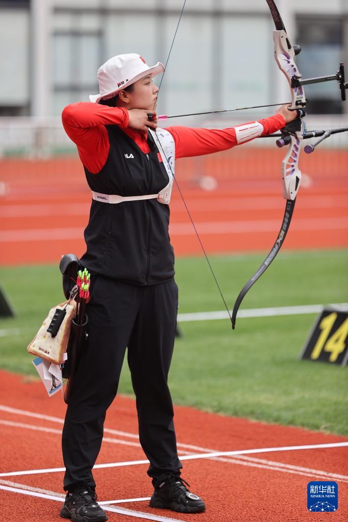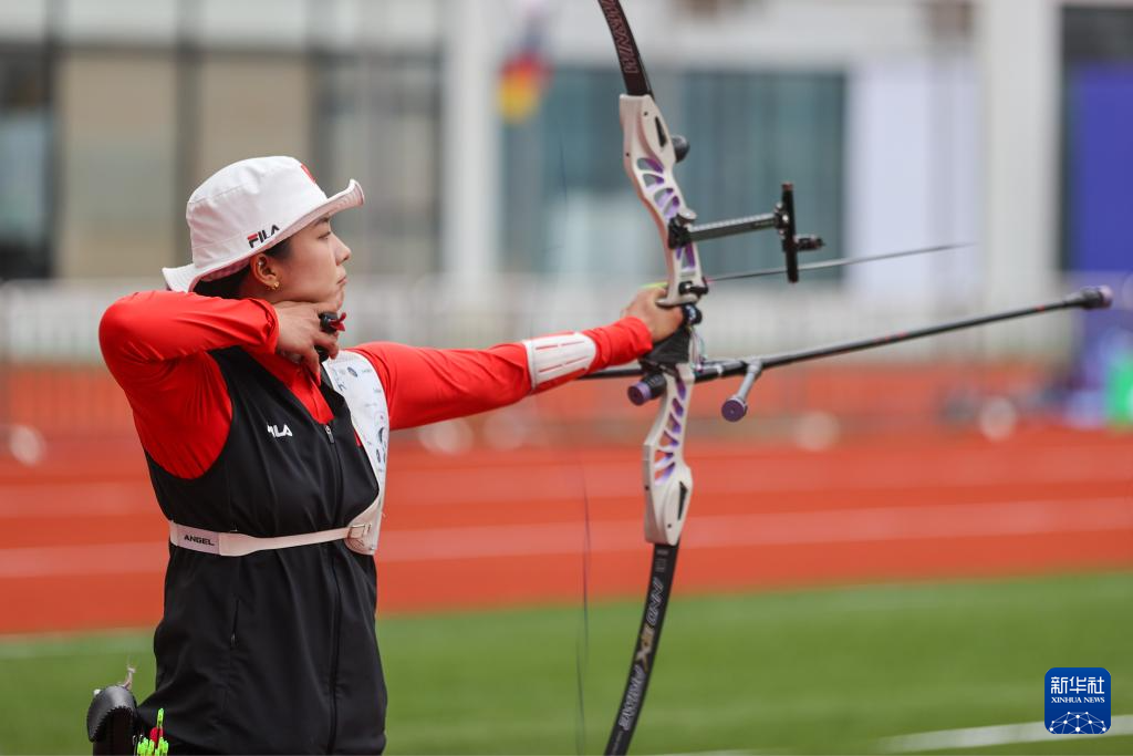4月26日,参赛选手在女子反曲弓个人淘汰赛中。新华社记者 王翔 摄