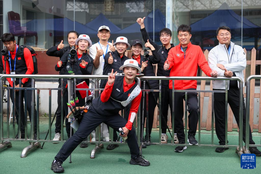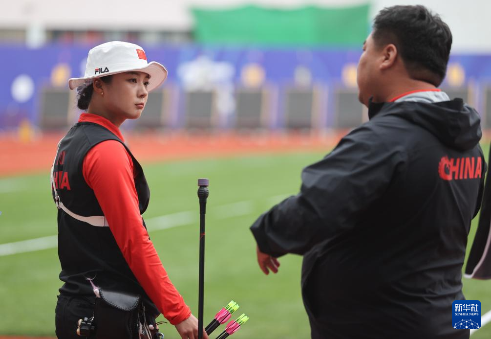 4月26日,参赛选手在女子反曲弓个人淘汰赛后。新华社记者 王翔 摄