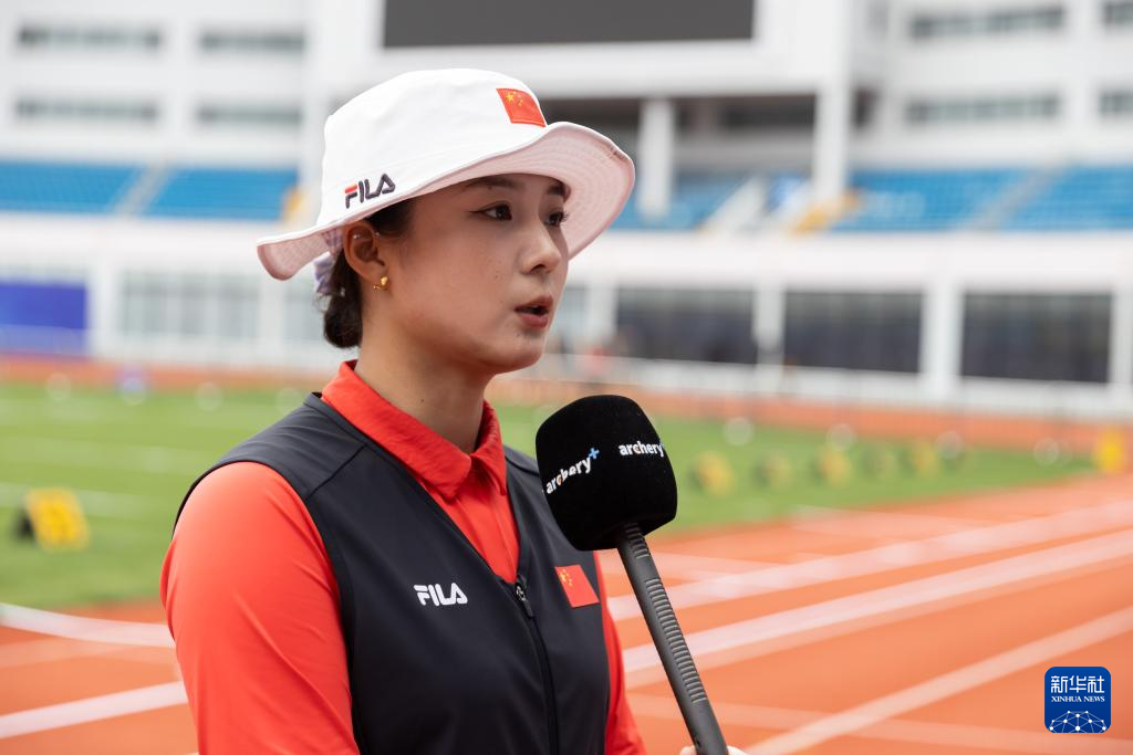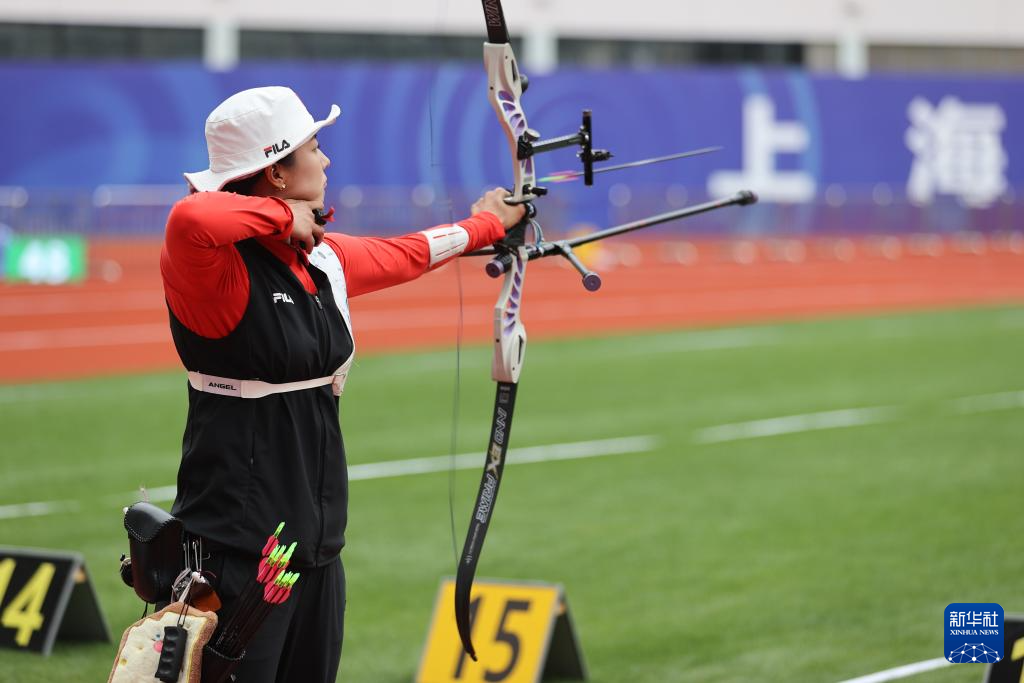当日,在2024射箭世界杯赛上海站女子反曲弓个人赛比赛中,中国女队选手李佳蔓晋级四强。
