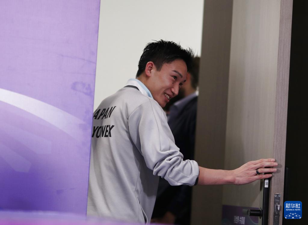 5月3日,桃田贤斗在新闻发布会后离场。新华社记者 贾浩成 摄