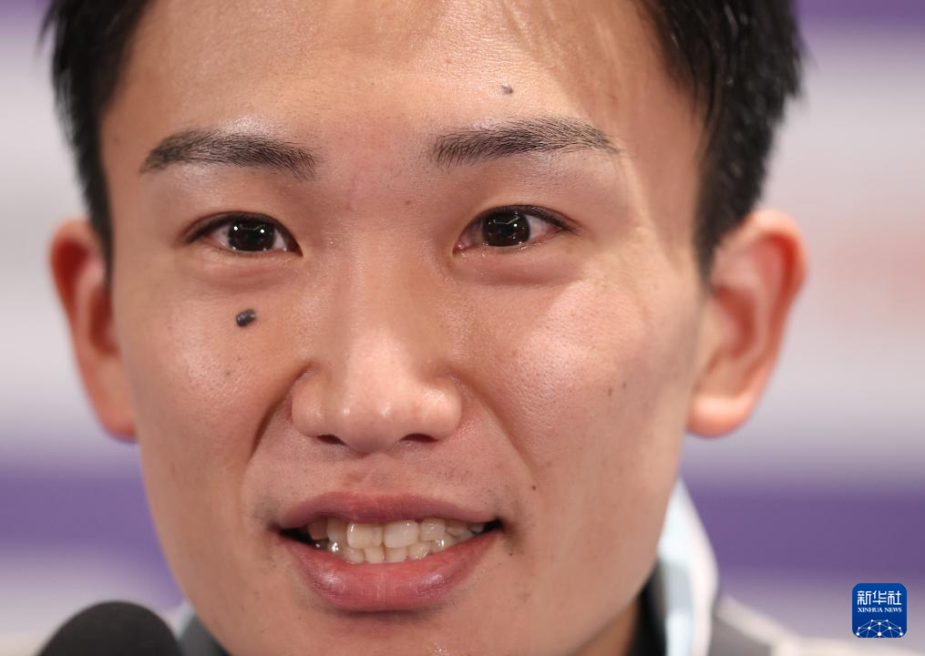 5月3日,桃田贤斗在新闻发布会上。新华社记者 贾浩成 摄