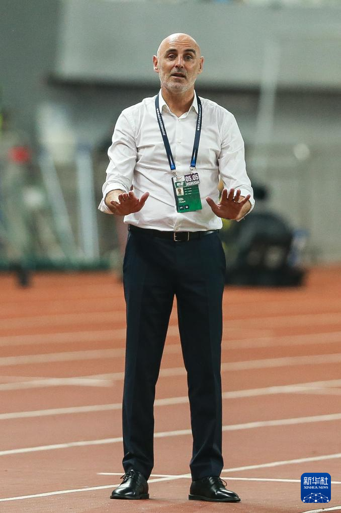 5月5日,上海海港队主教练穆斯卡特在场边指挥。新华社发(彭志刚摄)