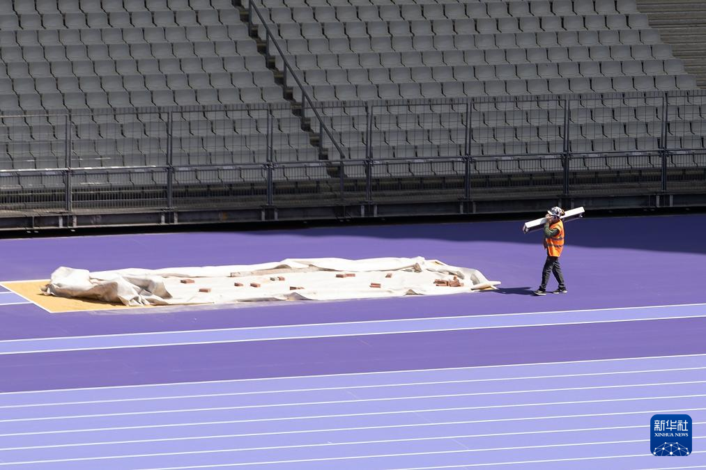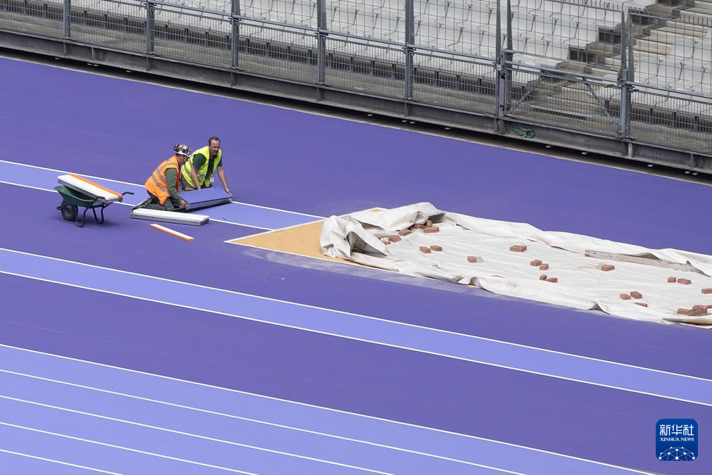 日前,巴黎北部的法兰西体育场铺设深浅两种紫色的跑道用于奥运会田径项目比赛,这也是奥运会田径赛场首次出现紫色跑道。