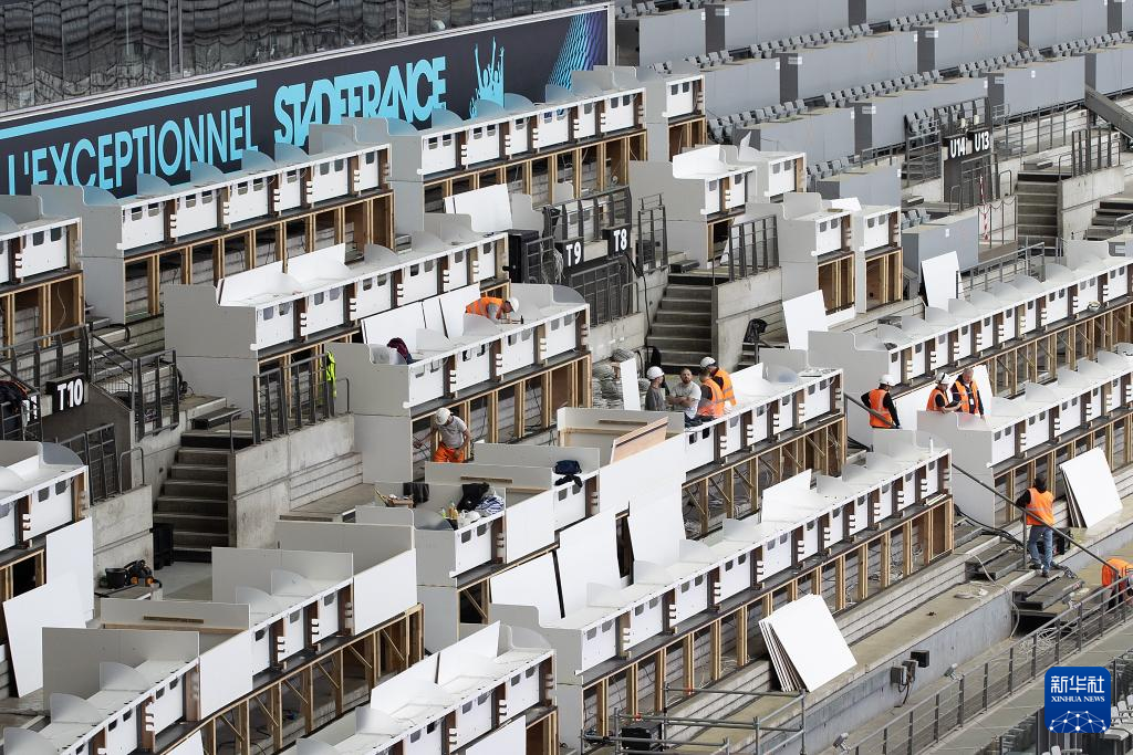 5月7日,工人在法兰西体育场看台施工。新华社记者 徐子鉴 摄