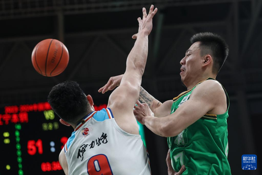 5月15日,辽宁本钢队球员张镇麟(右)在比赛中传球。新华社记者 潘昱龙 摄