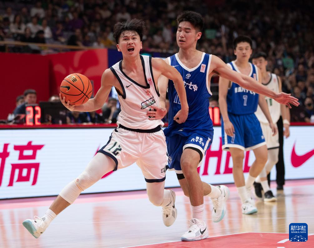5月19日,湖南地质中学队球员张文杰(左一)在比赛中突破。新华社记者 雒圆 摄