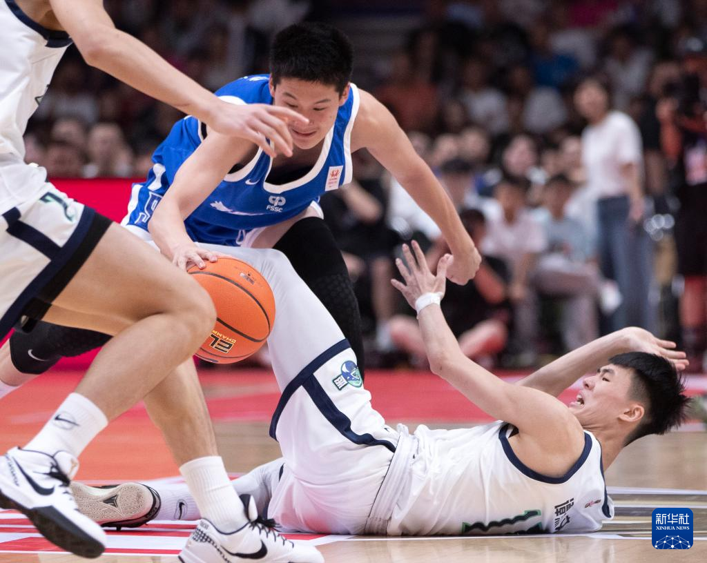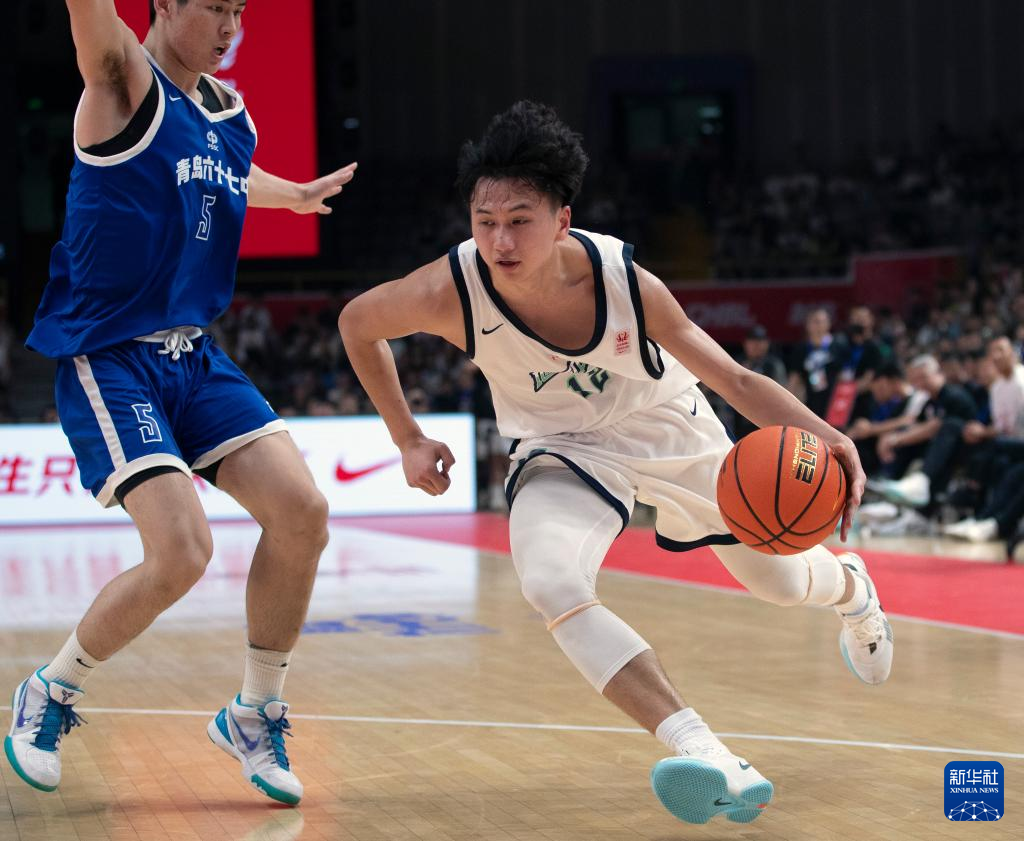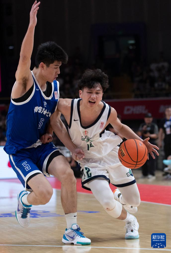 5月19日,青岛六十七中队球员王子鉴(中)在比赛中突破。新华社记者 雒圆 摄